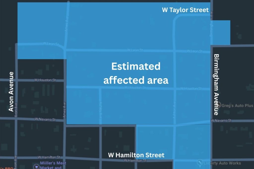 The outage area is estimated to include parts of Hamilton Street to Taylor Street, and Birmingham Avenue to Ames Avenue.